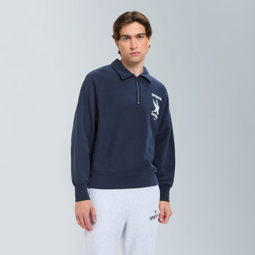 Part of the vintage-inspired sweatshirt series, the Half-Zip Stand Collar is crafted from classic fleece fabric made with open-end yarn on the outer layer. This unique construction gives the piece a structured silhouette and dry hand feel, echoing the authentic texture of vintage sportswear.