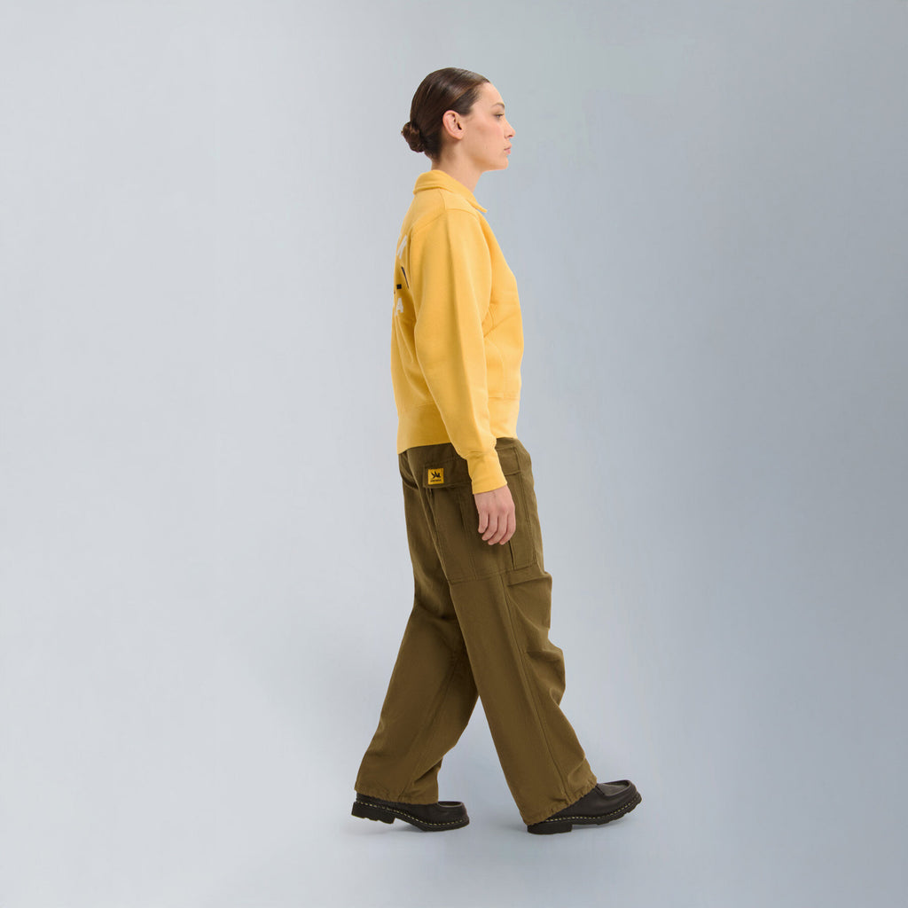 Inspired by the U.S. Army’s M-65 field jacket, these cargo pants are a modern take on the M-51 series, which was updated in 1965. This version has been reinterpreted using a heavyweight cotton satin fabric, offering a sturdy feel and a refined military look.