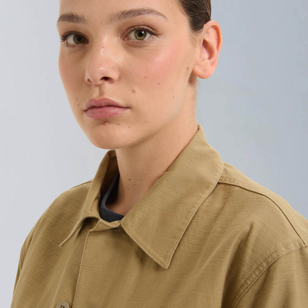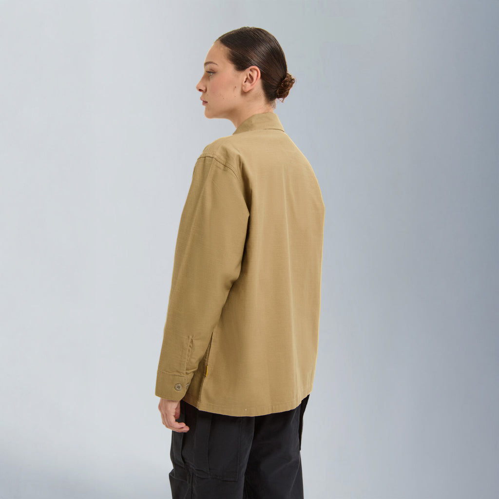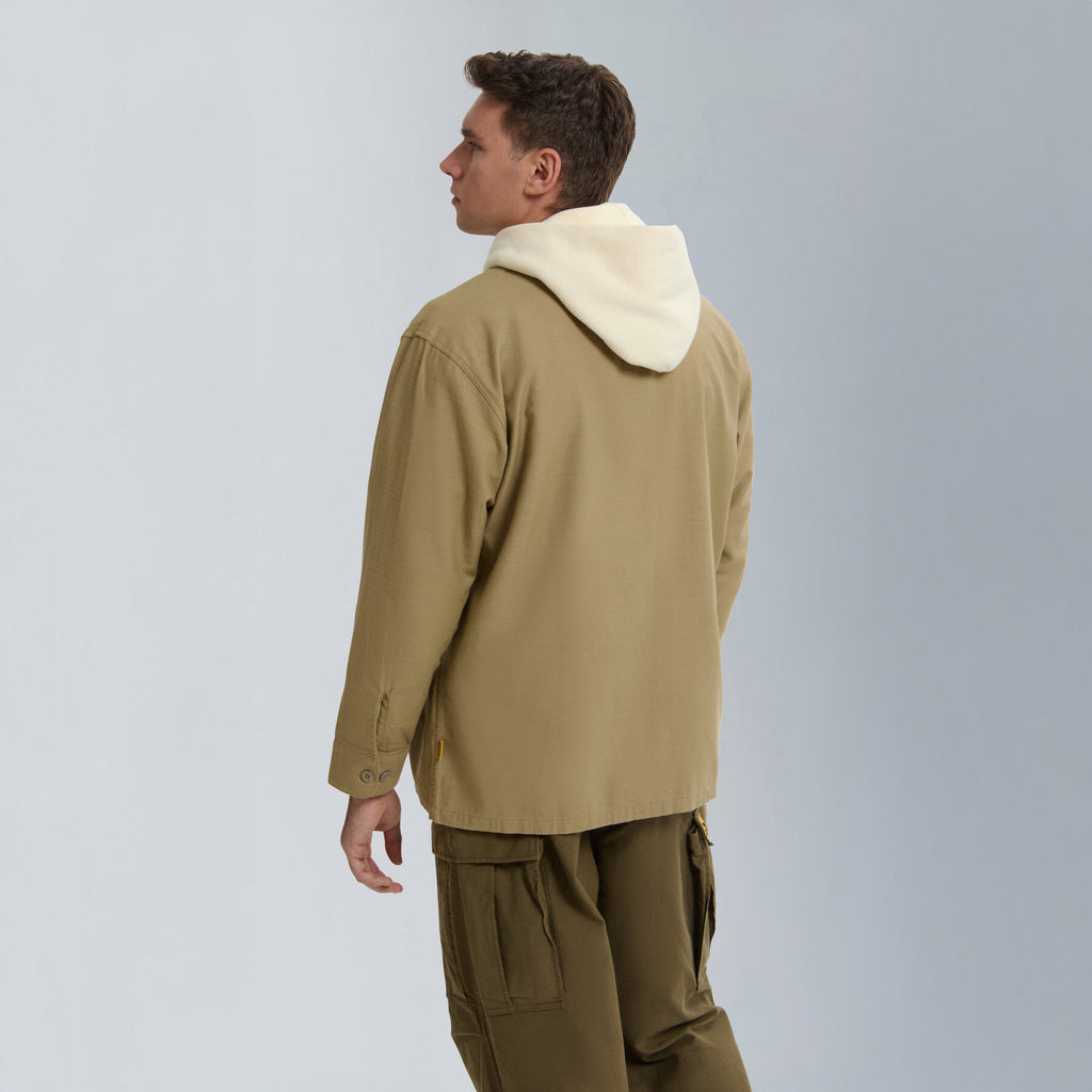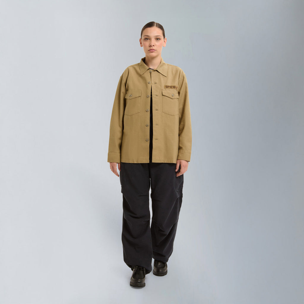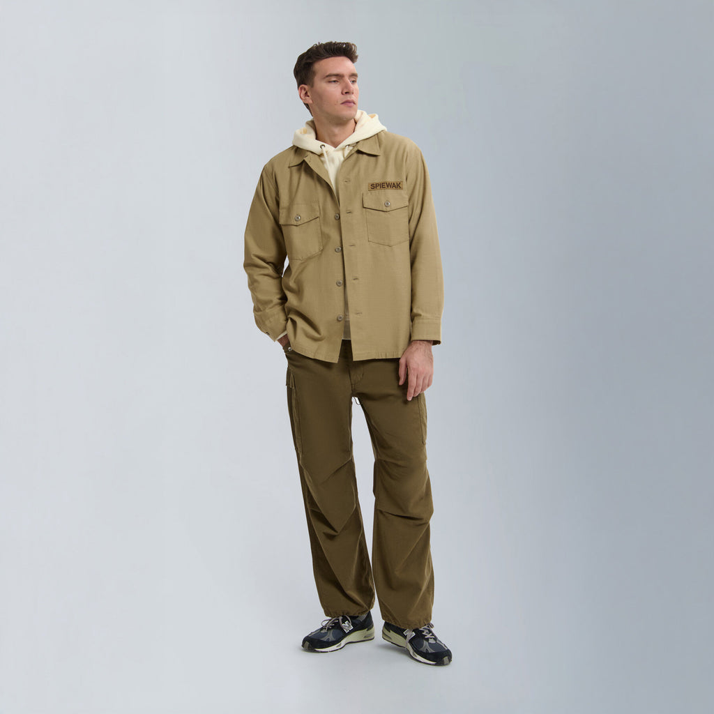 Inspired by the 1960s U.S. Army utility shirt, this design features a relaxed, oversized silhouette that nods to its military roots. Thoughtfully placed vintage-style details enhance its worn-in character, making it a timeless staple with a rugged, authentic feel.