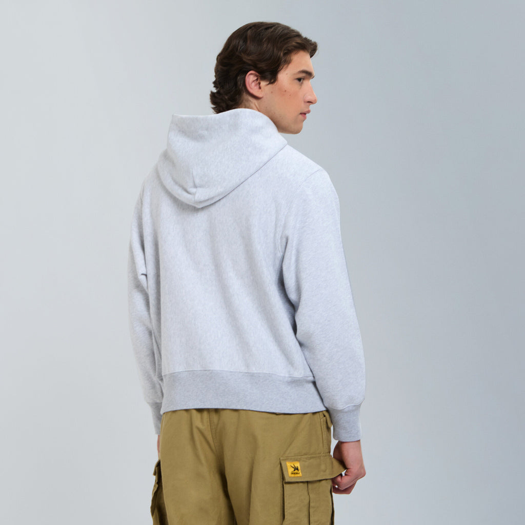 Part of the vintage-inspired sweatshirt series, the Hoodie Pullparka is crafted from classic fleece fabric featuring open-end yarn on the outer layer. This construction gives the piece its signature structured feel and dry touch, echoing the look and texture of true vintage sportswear.