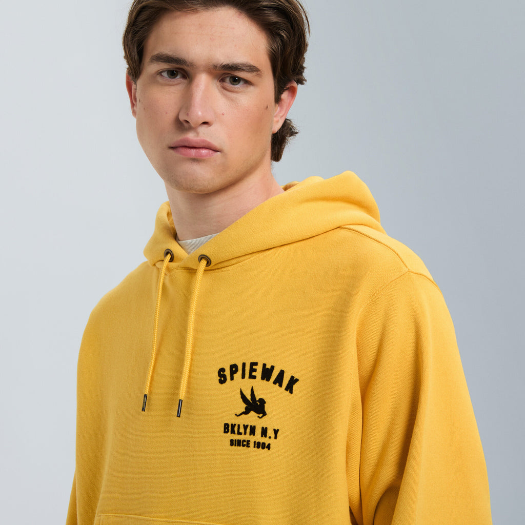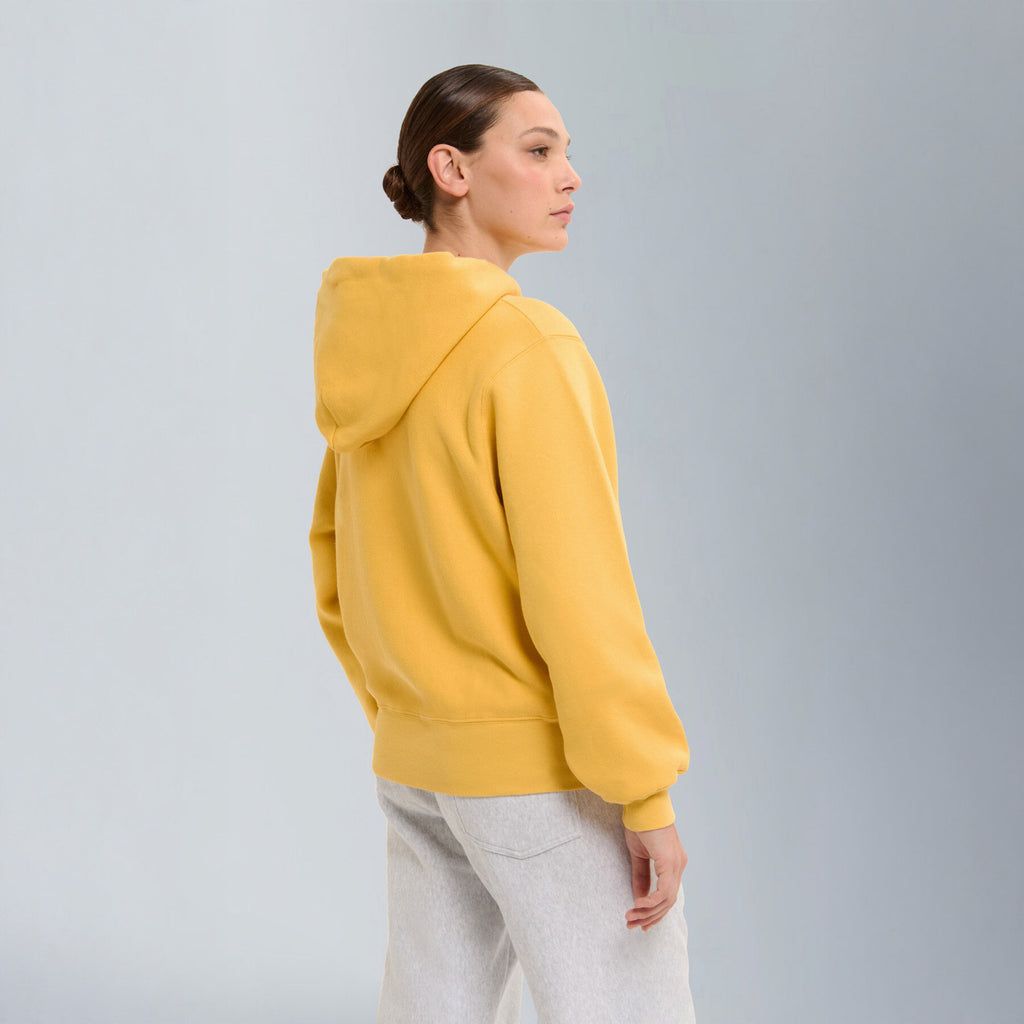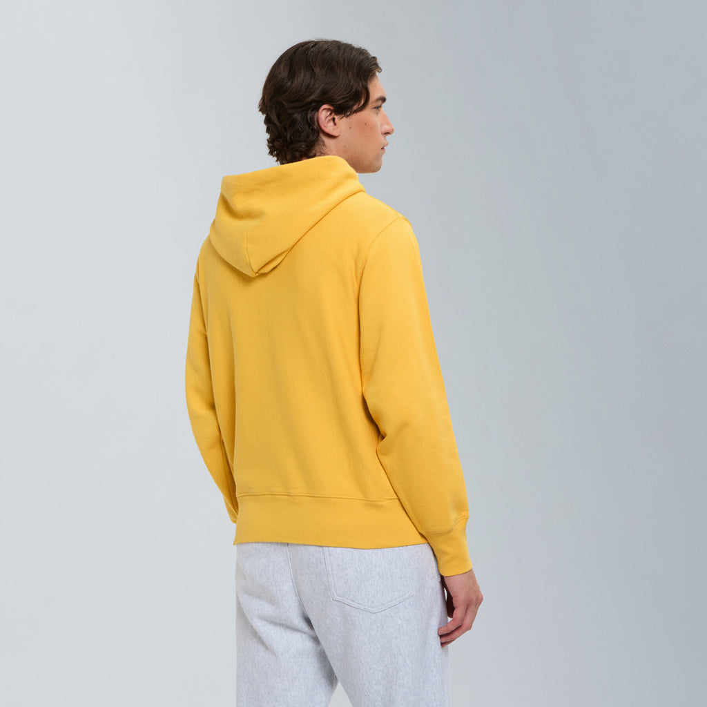 Part of the vintage-inspired sweatshirt series, the Hoodie Pullparka is crafted from classic fleece fabric featuring open-end yarn on the outer layer. This construction gives the piece its signature structured feel and dry touch, echoing the look and texture of true vintage sportswear.
