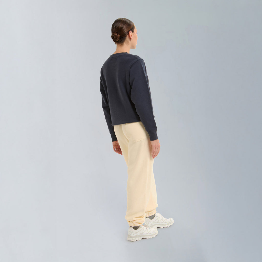 Part of our Sweatshirt Series, these sweatpants are crafted from vintage-inspired fleece, offering a structured silhouette and a distinctive dry touch. The outer surface is made using open-end yarn, which gives the fabric its unique texture and firm feel.